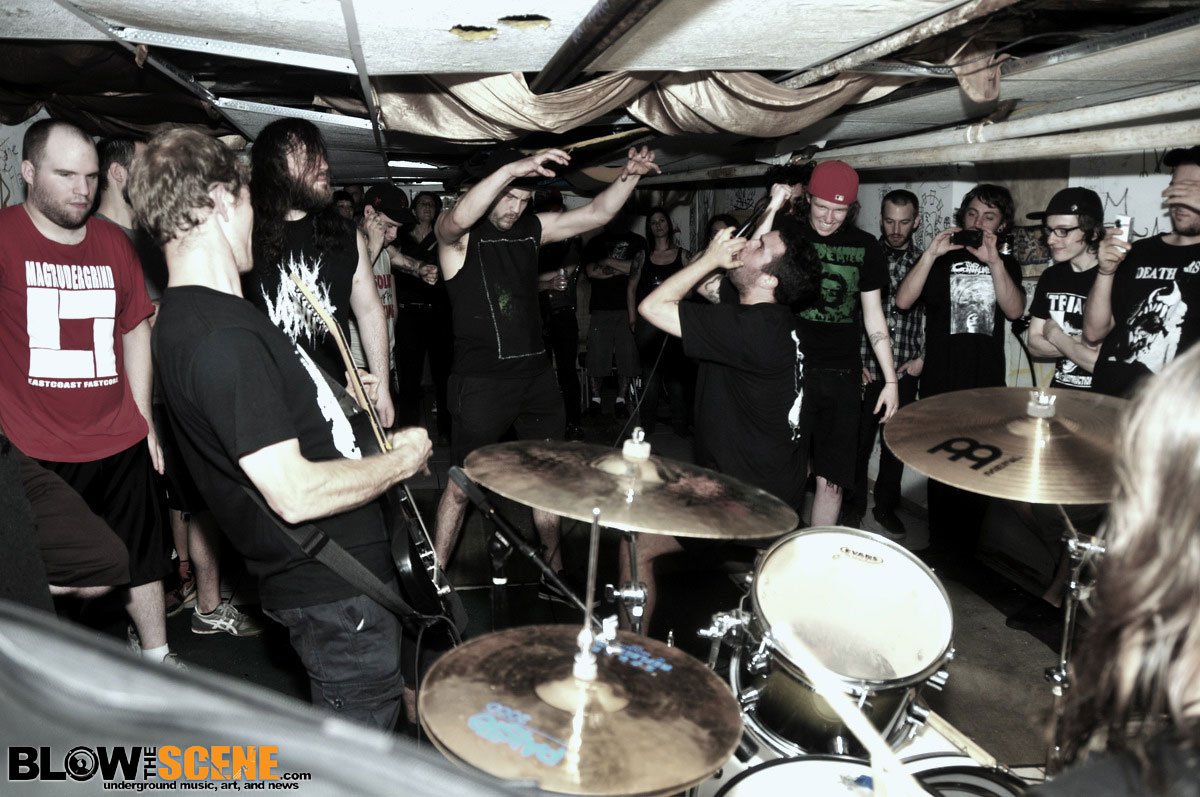 Here is the first half of a very special addition of Blow The Scene’s Philly House Shows! We attended Blast Beat Be-Header Vol.1 and Vol.2 last week as many of the top grindcore and metal bands in the world were stopping through Philly on their way to Maryland Death Fest. Blast Beat Be-Header vol. 1 was hosted at one of our favorite West Philadelphia show houses, International Waters, by none other than local promoter Logan Neubauer, who managed to draw a decent size crowd for a Monday night thrash-off. We’ll be sitting down with Logan soon for a local spotlight interview, so keep an eye for that! Philly House Shows pt IV vol. 1 features Gash, Amputee, Doubled Over (Australia), Internal Rot (Australia), Mutilation Rites (New York), and Coffin Dust. Tomorrow we will have Vol 2 featuring Noisear, Shitstorm, The Kill, and Chainsaw to the Face.