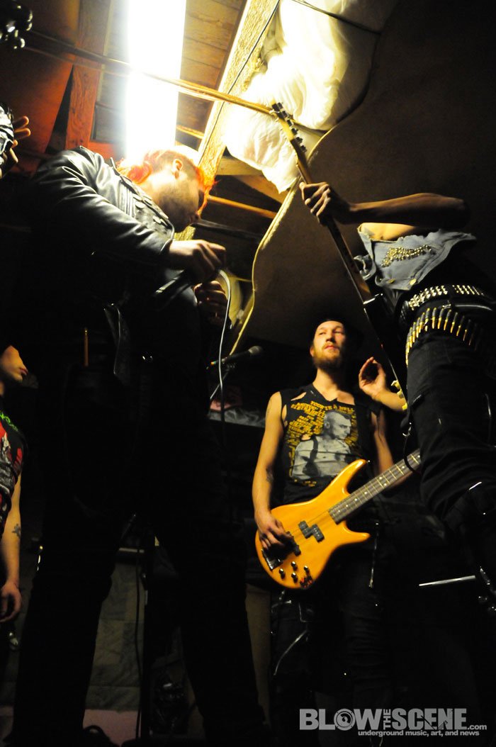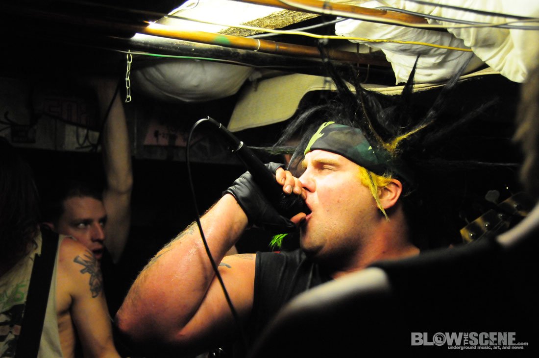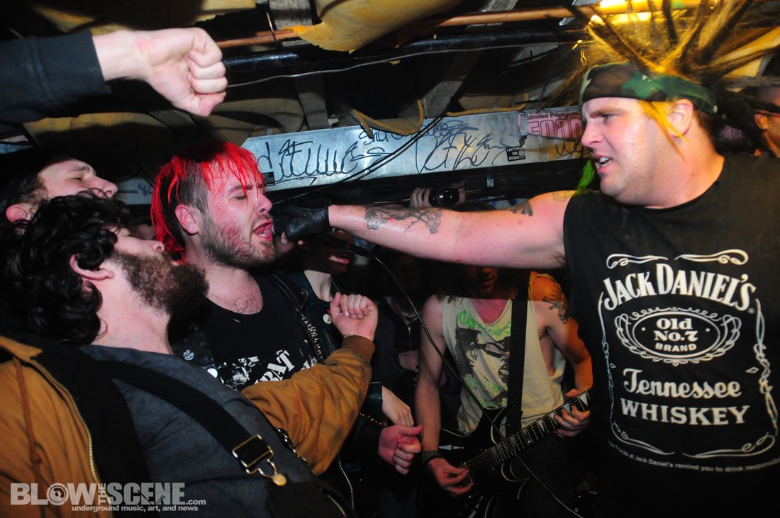 Last Friday, BTS photographer James and I made the trek out to one of West Philadelphia’s leading punk staples, The Shore House. I’ve seen several shows here over the years and these guys run a legit East Coast-DIY-Institution. Several bands, including West Philadelphia’s Bucket Flush use this graffiti-stained cellar as a practice space. The Shore House has seen hundreds of bands pass through and was nearly shutdown after “Pointless Fest” in 2009 when neighbors signed a petition to have the tenants evicted for the overwhelming turnout. Since then, the tenants have streamlined the show process and organize the chaos with a steady crew of musicians and friends.