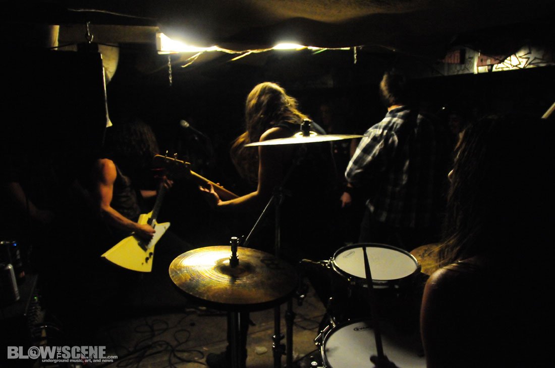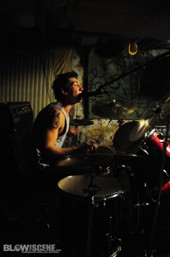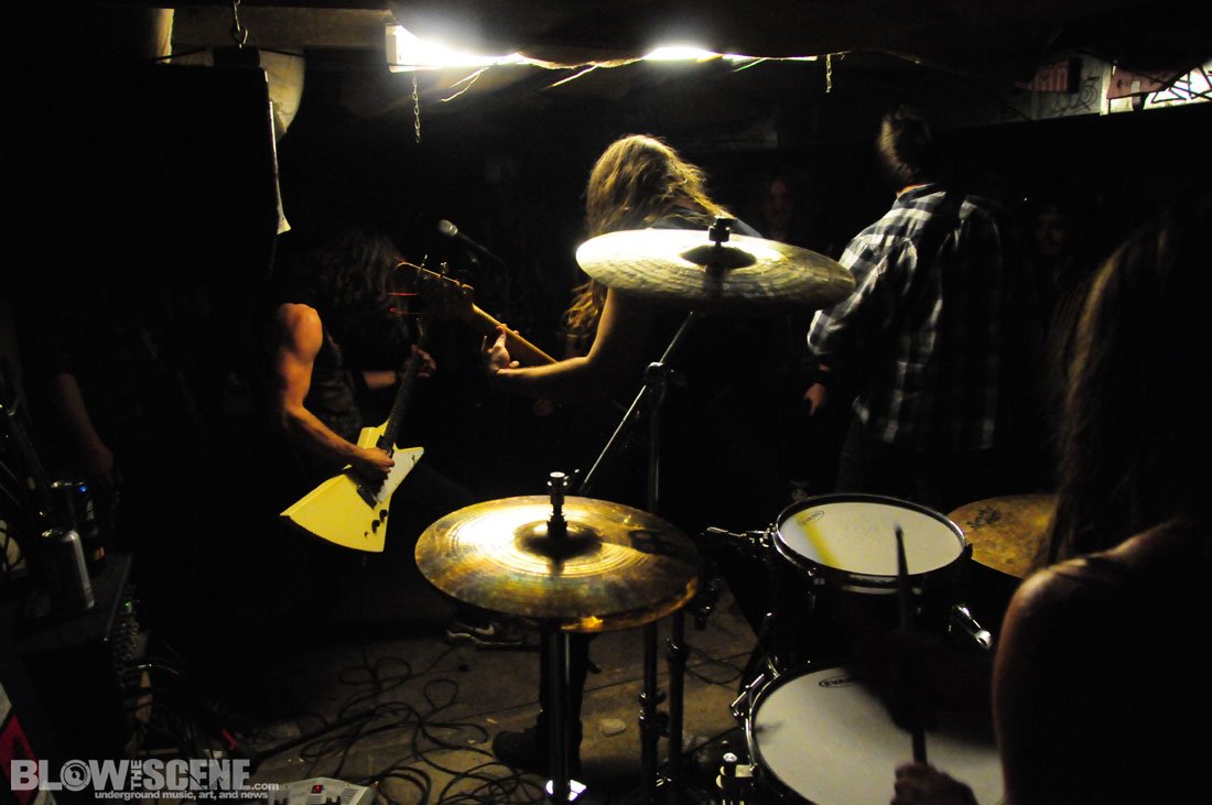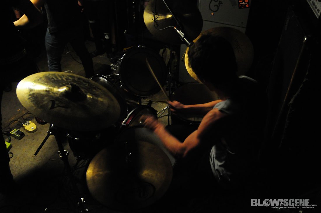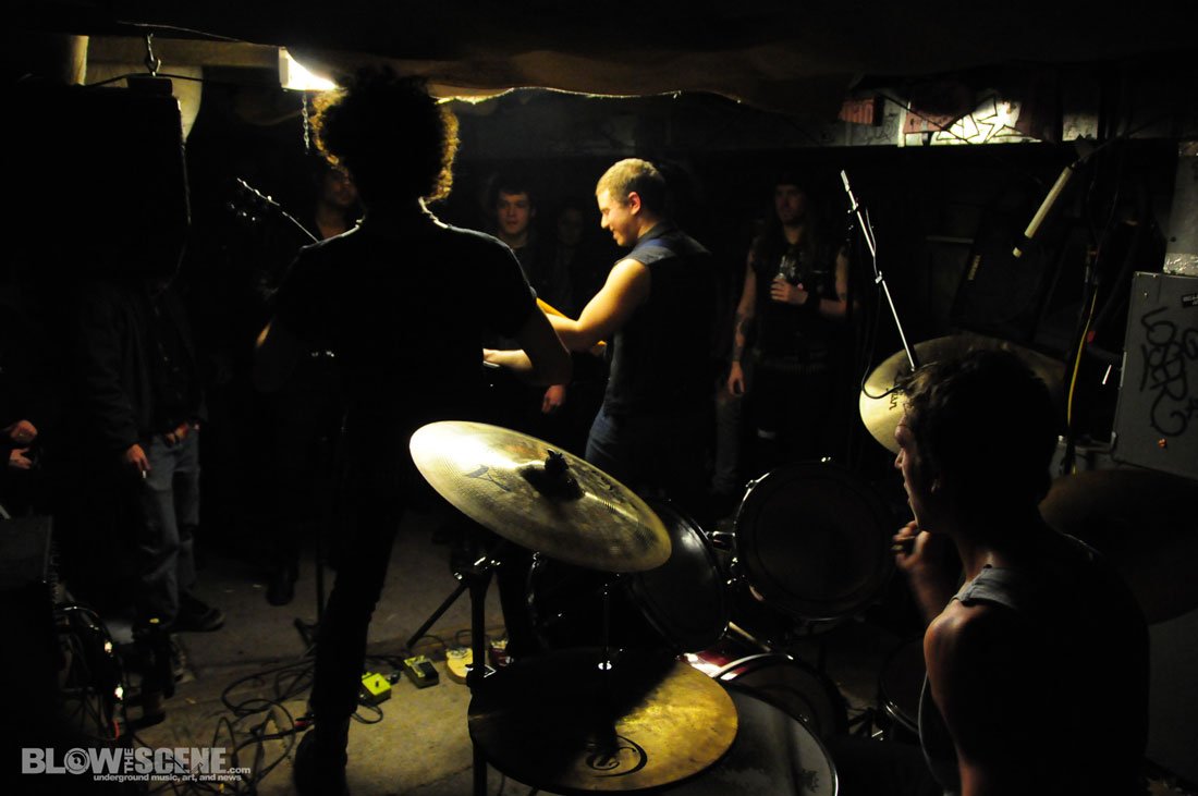 The Shore House has been active for over 5 years now and has seen dozens of tenants come and go and was named after the original group of tenants who moved from the shores of the East Coast. We agreed not to publish the address, location, or last names to help the house remain underground. Original Shore House founder John was there to help with set up (which consisted of picking up some beer cans, moving a few tables and chairs, and directing bands through the handcrafted stage and blanket-style soundproofing system). John also provide James and I with this back-story before leaving the dank basement to the bands.