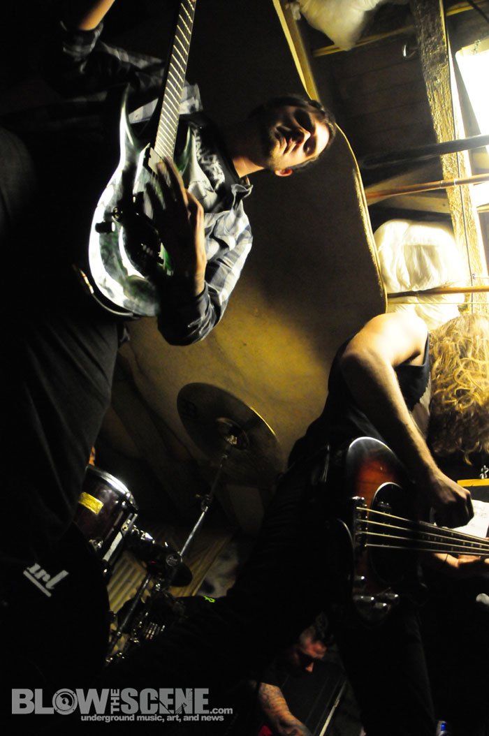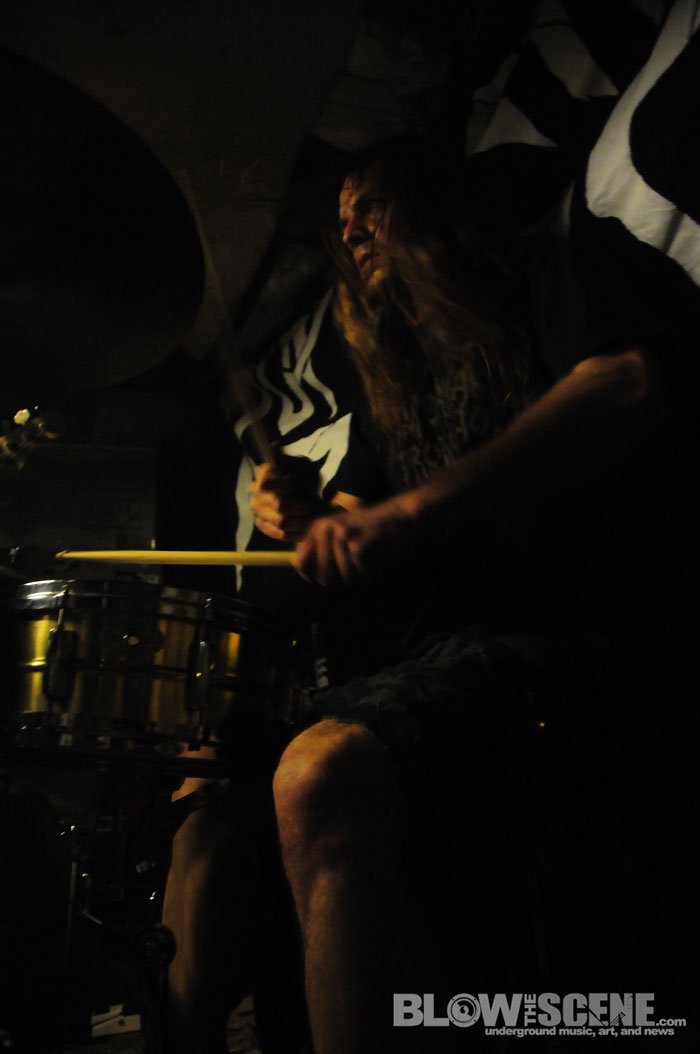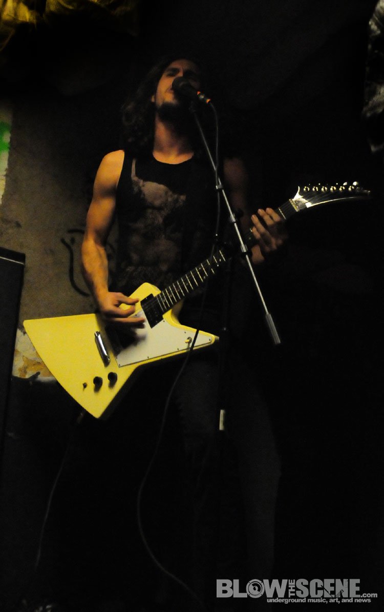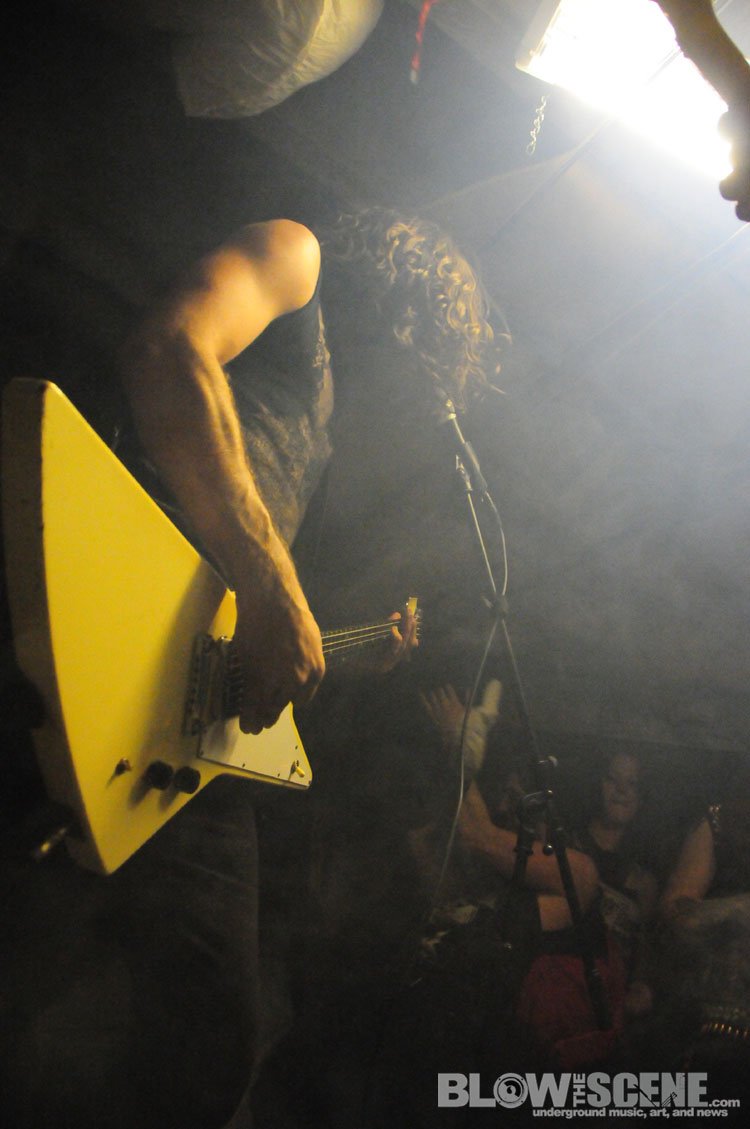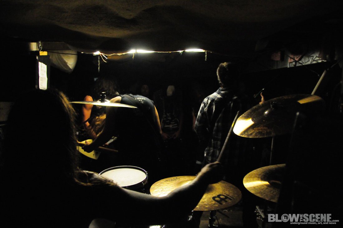 The Shore House has been active for over 5 years now and has seen dozens of tenants come and go and was named after the original group of tenants who moved from the shores of the East Coast. We agreed not to publish the address, location, or last names to help the house remain underground. Original Shore House founder John was there to help with set up (which consisted of picking up some beer cans, moving a few tables and chairs, and directing bands through the handcrafted stage and blanket-style soundproofing system). John also provide James and I with this back-story before leaving the dank basement to the bands.