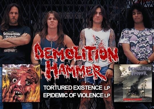 Century Media Records have just pressed fresh editions of Demolition Hammer‘s quintessential Tortured Existence (1990) and Epidemic Of Violence (1992) on vinyl. Limited colors and runs, so get em’ quick.