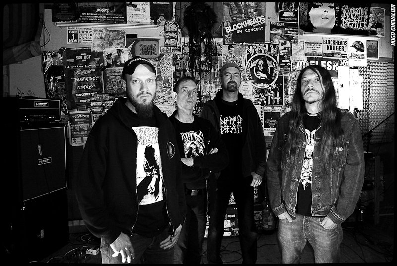 Formed 20 years ago, Blockheads (Xav – vocals, Fred – guitar/vocals, Nico -drums/vocals & Eric – bass/vocals) have unleashed four full-lengths in addition to numerous splits, comps and DVDs. The band has toured throughout Europe with such genre heavyweights as Napalm Death, Nasum, Carcass and Brutal Truth.